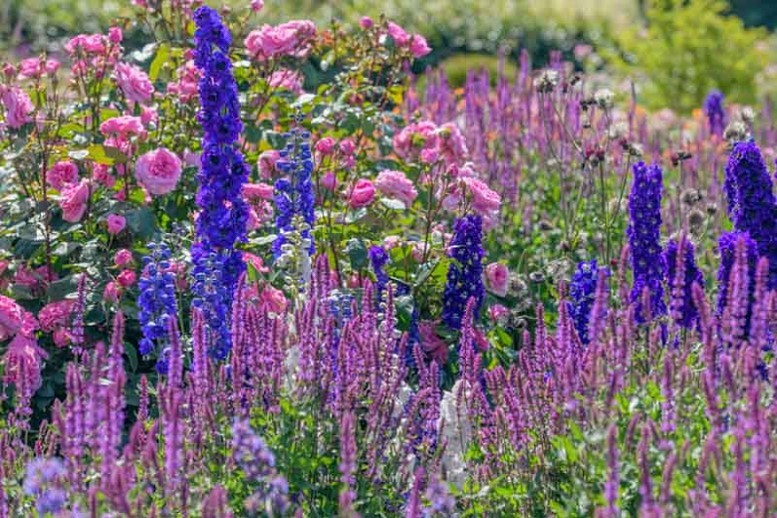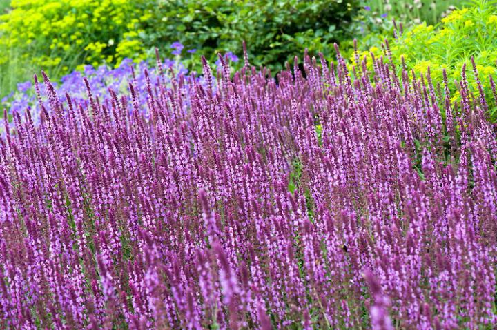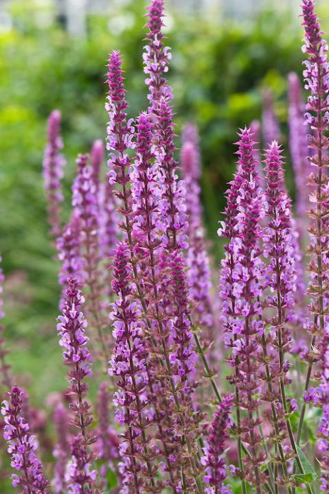 Pôsobivá bohato kvitnúca šalvia s výraznými ružovo fialovými kvetmi.