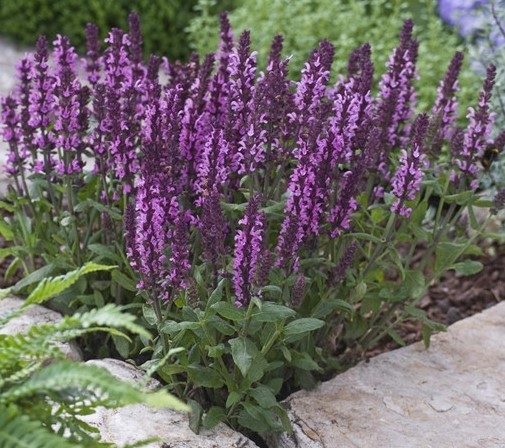 Semená dominantnej trvalky s ružovo fialovými klasmi kvetov a atraktívnymi listami.