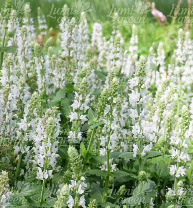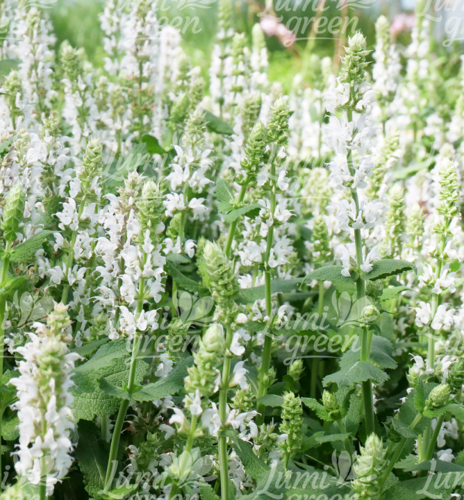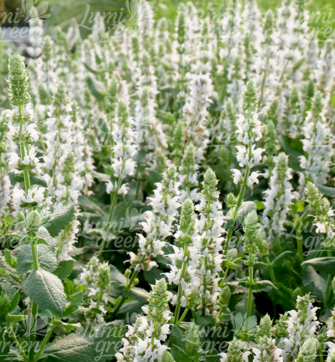 Charakteristika: Šalvia ´SALUTE WHITE®´ je nenáročná trvalka kvitnúca úzkymi klasmi drobných bielych kvetov, ktoré krásne vynikajú nad zeleným trsom. Listy sú oválne, aromatické a mierne chlpaté. Vďaka bohatému a dlhodobému kvitnutiu je výborná do zmiešaných trvalkových záhonov.
