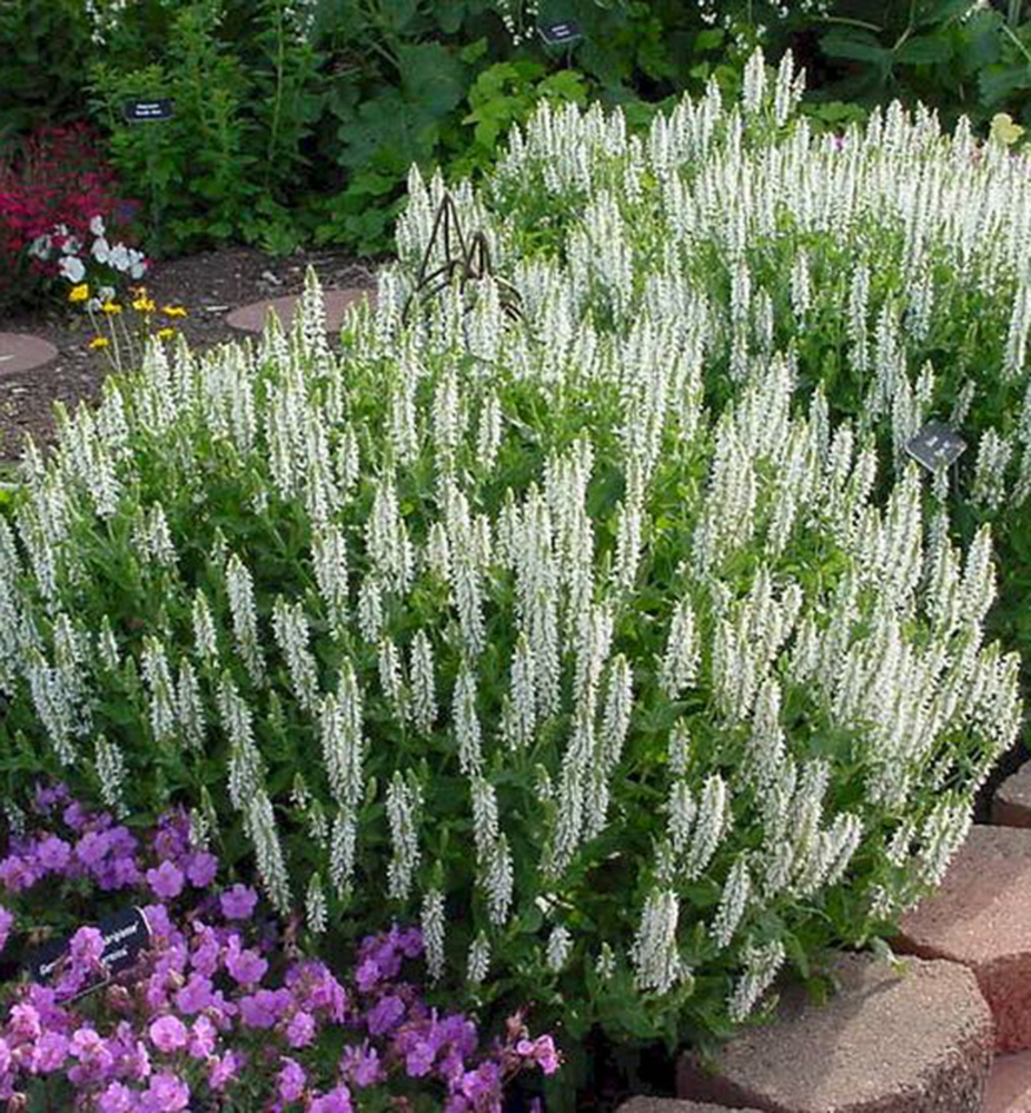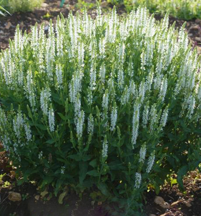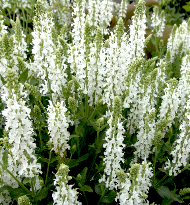 Kompaktná, bohato kvitnúca a nenáročná šalvia s výraznými bielymi kvetmi.