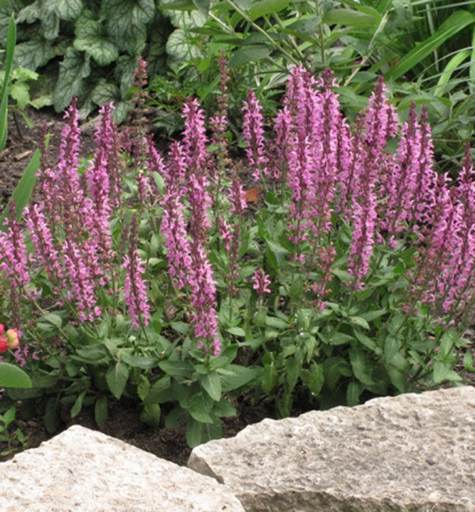 Kompaktná trpasličia šalvia s množstvom ružových kvetov, vhodná aj do črepníka.