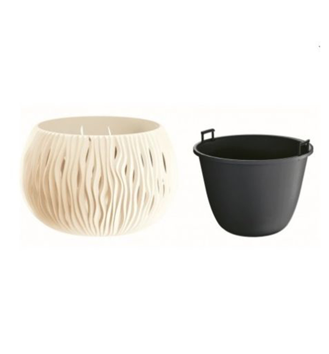 Charakteristika: Kvetináč SANDY BOWL svojim dizajnom nápadito pripomína jemné pieskové vlny. Dekoratívny vzhľad kvetináča podčiarkujú jeho efektívne zvislé otvory popri celoplošnom vlnitom vzore. Jeho súčasťou je vklad na vysadenie rastlín. Je vyrobený z vysoko kvalitného, ľahko umývateľného materiálu. Odtieň: krémový.