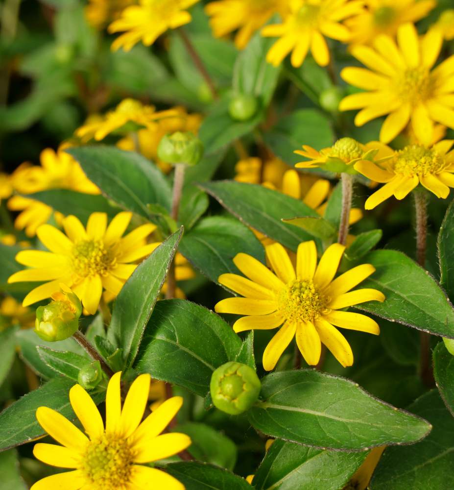 Bohato kvitnúca letnička s množstvom žiarivo žltých kvetov.