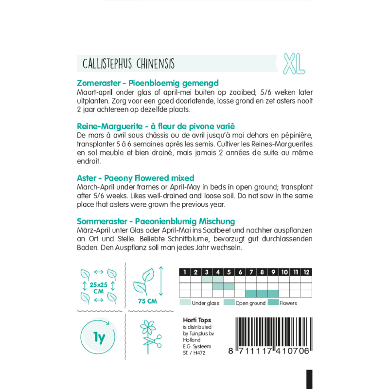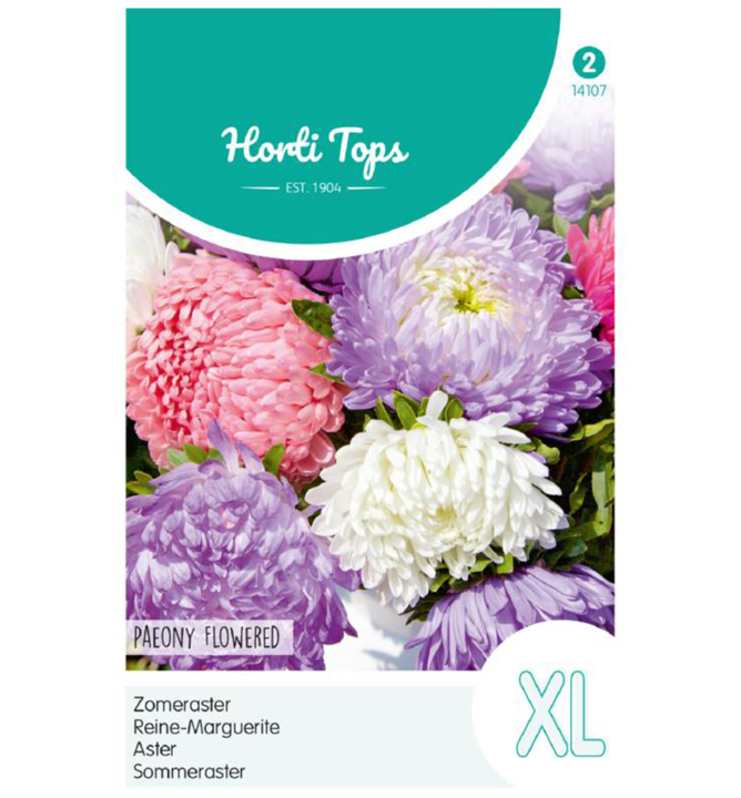 Charakteristika: Astra je letnička, ktorá pôvodom pochádza z Ázie. Balenie obsahuje veľmi atraktívnu pivoňkovitú zmes v rôznych farebných prevedeniach. Kvety majú plné kvety a kvitnú od júna až do novembra. Astry rastú do výšky 75 cm, kvety sú vhodné k rezu do kytíc a kvetinových aranžmánov. Môžu sa pestovať priamo v záhone, ale aj v črepníku.