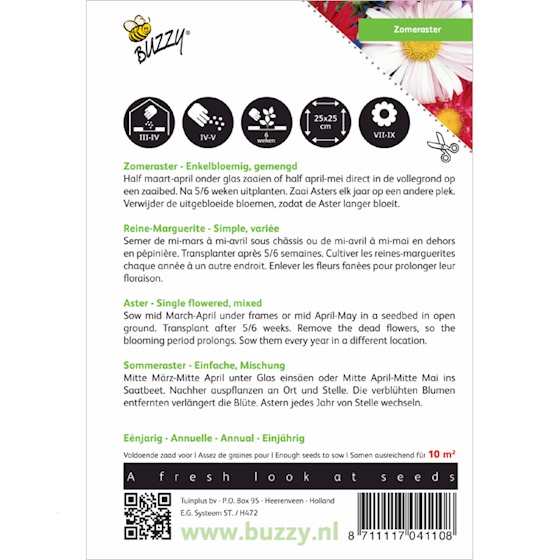 Charakteristika: Astra je letnička, ktorá pôvodom pochádza z Ázie. Balenie obsahuje astry, ktoré kvitnú od júna do novembra kvetmi v rôznych farebných prevedeniach. Vďaka svojej výške sú kvety vhodné k rezu do kytíc a kvetinových aranžmánov. Môžu sa pestovať priamo v záhone, ale aj v črepníku.