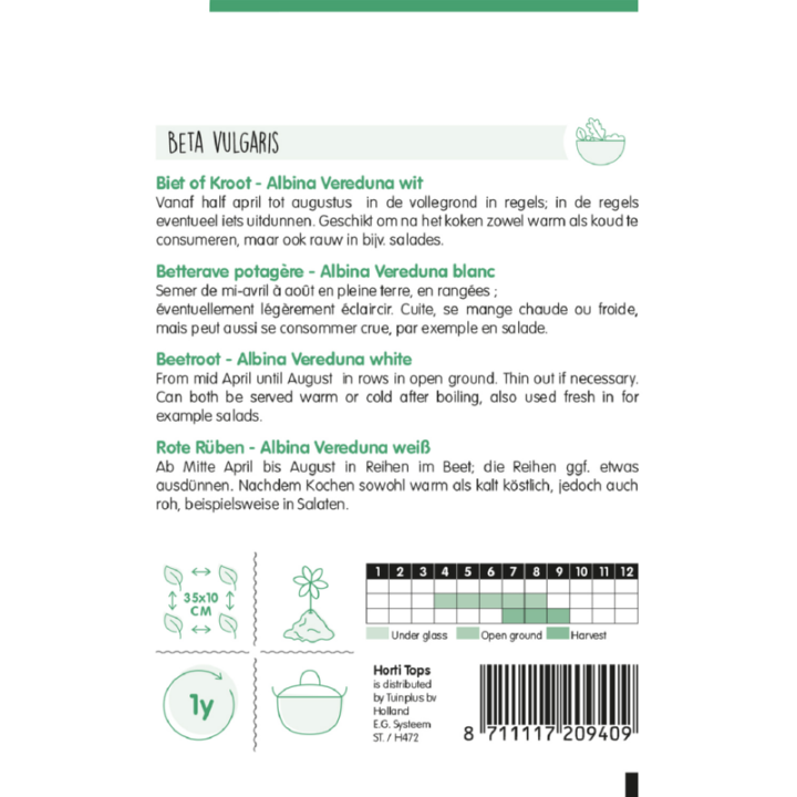 Charakteristika: Biela repa ´ALBINA VEREDUNA´ je netradičná odroda, ktorá sa vyznačuje vysokou kvalitou plodov. Vytvára biele guľaté plody s jemnou sladkou chuťou. Plodí bohato od júla až do novembra. Koreň repy je v surovom stave sladký, najmä v prípade mladších rastlín. Môžeme ho tiež variť a požívať ako zeleninu pri varení alebo pečení. Listy v surovom alebo varenom stave slúžia ako náhrada špenátu.