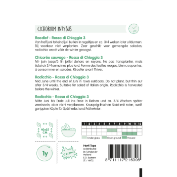 Charakteristika: Čakanka ´Rossa di Chioggia´ je listová zelenina talianského pôvodu, ktorá vytvára purpurovo-červené hlavy krehkých listov s vynikajúcou, mierne ostrou chuťou. Využíva sa na prípravu čerstvých šalátov či polievok. Listy sú tiež vhodné na pečenie alebo grilovanie.