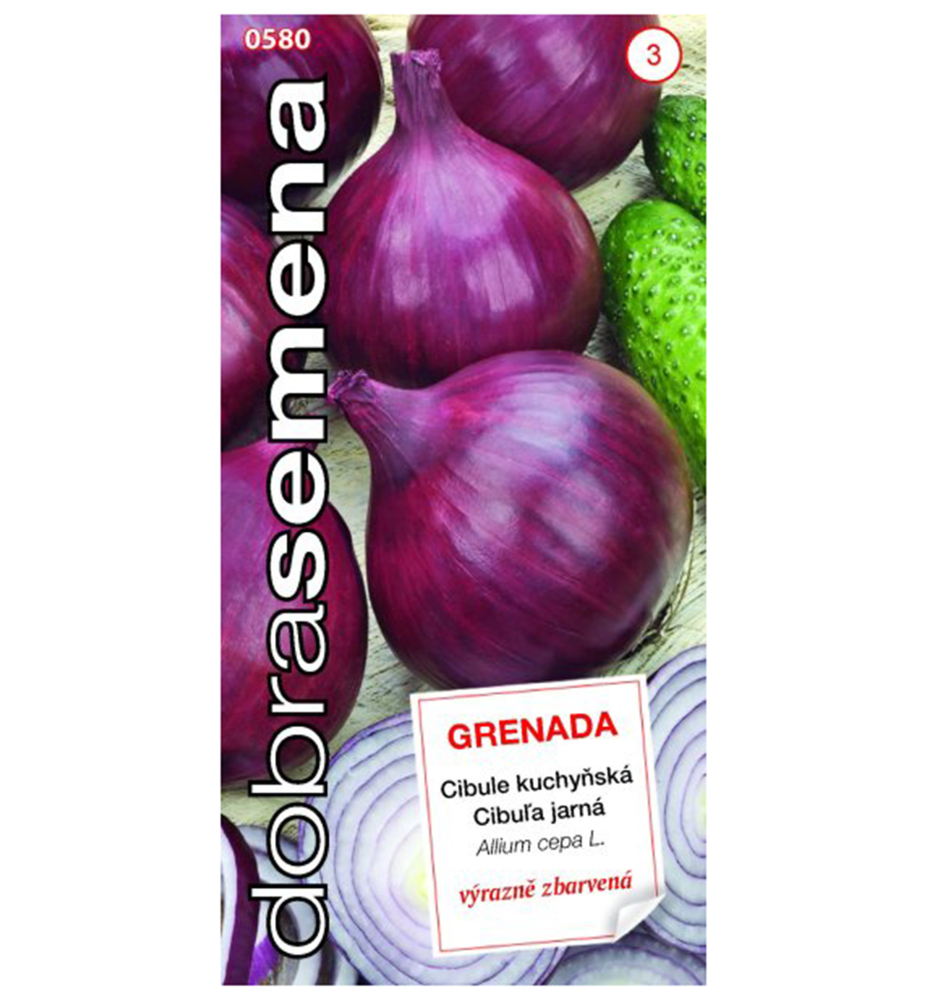 Charakteristika: Cibuľa červená ´GRENADA´ je skorá a veľmi úrodná odroda červenej cibule, určená na strednodobé skladovanie a priamy konzum. Cibule sú veľké, s hmotnosťou okolo 190 g, okrúhle, výrazne sfarbené. Povrchová farba je karmínovo fialová, na reze je cibuľa biela s karmínovými vnútornými suknicami. Odroda je vhodná na pestovanie zo sadzačky aj z priamych výsevov. Vegetačné obdobie od výsevu je 120 až 125 dní. Cibule sú vhodné na tepelnú úpravu, vďaka lahodnej chuti a krásnemu sfarbeniu aj do šalátov.