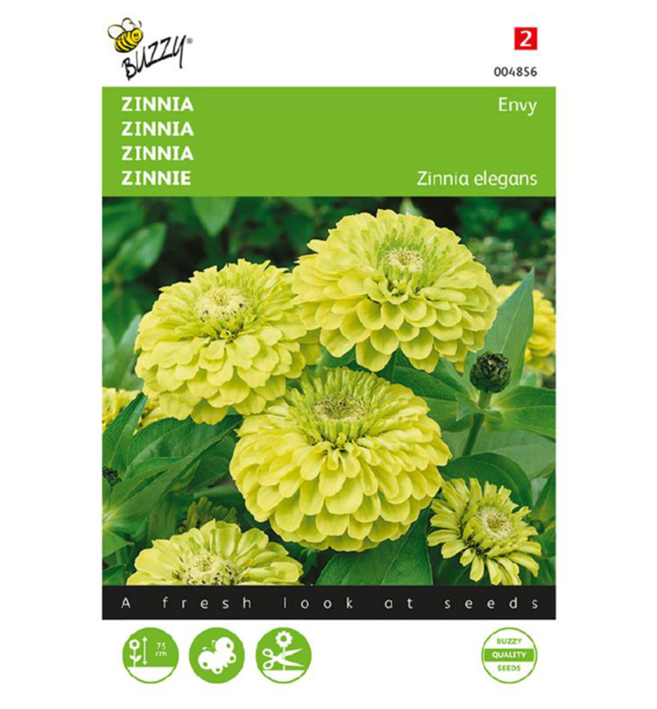 Charakteristika: Cínia patrí medzi obľúbené letničky, ktoré nesmú chýbať v letnom záhone. Majú krovitý rast a dorastajú do výšky 70 - 75 cm. Cínie sú vhodné na výsadbu do kvetinových hriadok, do veľkých výsadieb, ale aj k rezu. Vo váze vydržia až 14 dní. Cínia ´ENVY´ sa vyznačuje veľkými plnými kvetmi modernej zelenej farby. Tvar kvetu je podobný kvetu georgíny.