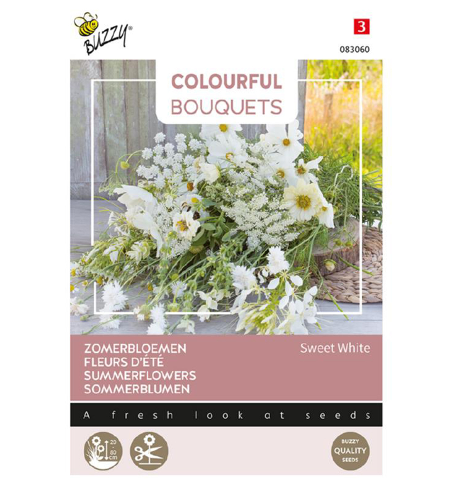 Charakteristika: Táto zmes obsahuje pestrý výber jednoročných kvetov bielej farby. Budú skutočným mesiace kvitnúcim bohatstvom vo vašej záhrade. Tieto kvety sú veľmi atraktívne pre motýle a včely. Výška 20-80 cm.