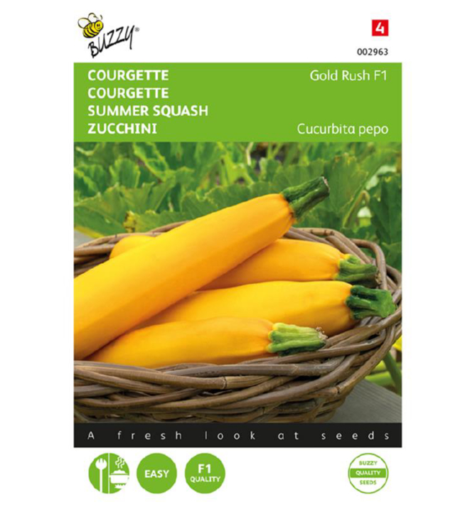 Charakteristika: Cuketa ´GOLD RUSH F1´ je stredne skorá odroda. Produkuje valcovité, sýtožlté plody, dlhé 18 až 20 cm. Dužina je mimoriadne jemná a mäkká s aromatickou chuťou. Je vhodná na pestovanie v skleníku i na otvorenom priestranstve. Je to veľmi výnosná odroda, patrí k najlepším zo všetkých žltých odrôd. Plody sú vhodné na prípravu chutných pokrmov v dusenej, smaženej a zapekanej forme.