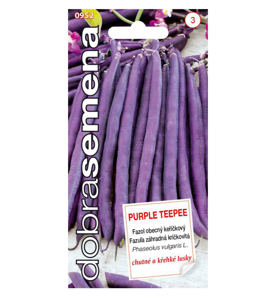 Charakteristika: Fazuľa kríčková ´PURPLE TEEPEE´ je odroda s výrazne fialovými strukmi dlhými 10-12 cm. Struky sú krehké, nasadené nad listami a ľahko sa zbierajú. Na priereze sú guľaté a sú bez pergamenovej vrstvy. Rastlina je pevná s tmavým až fialovými listami. Fazuľa je vhodná na konzumáciu v čerstvom stave i mrazenie.