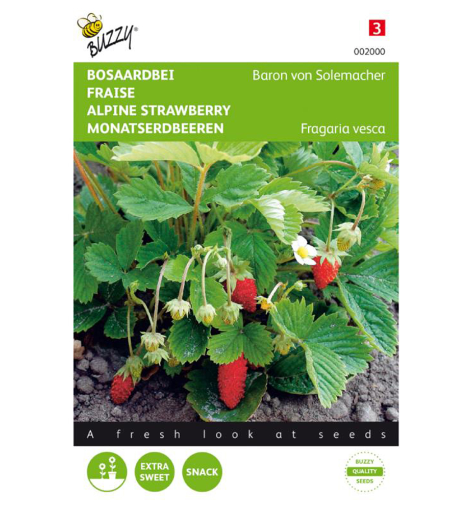 Charakteristika:Obľúbená odroda alpských jahôd ´Baron von Solemacher´ sa vyznačuje neustálym kvitnutím a plodením od jari až do neskorej jesene. Plody jahôd sú kuželovitého tvaru, jasnej červenej farby. Chuť jahôd je výraznejšia a sladšia, pripomína chuť lesných jahôd.