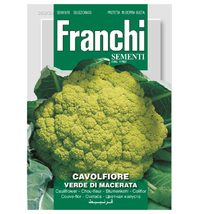 Charakteristika: Odroda ´CAVOLFIORE VERDE DE MACERATA´ pochádza z Talianska. Vyznačuje sa veľkými, pevnými, vysoko kvalitnými hlavami svetlo zelenej farby. Kompaktné, veľké hlavy môžu dokonca dosiahnuť hmotnosť 1,3 kg. Táto zelenina je určená na priamu konzumáciu, dokonca surovú, ale väčšinou sa podáva varená.