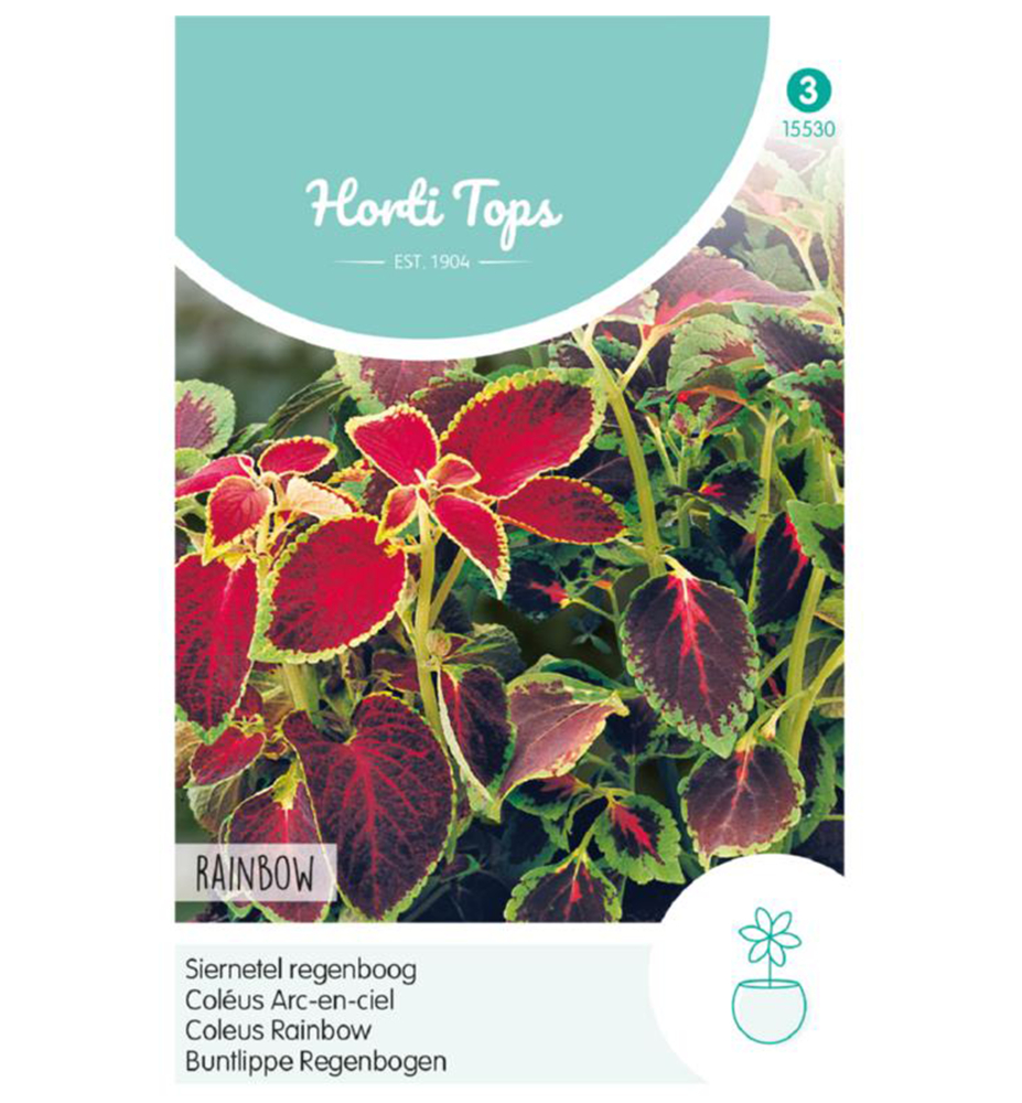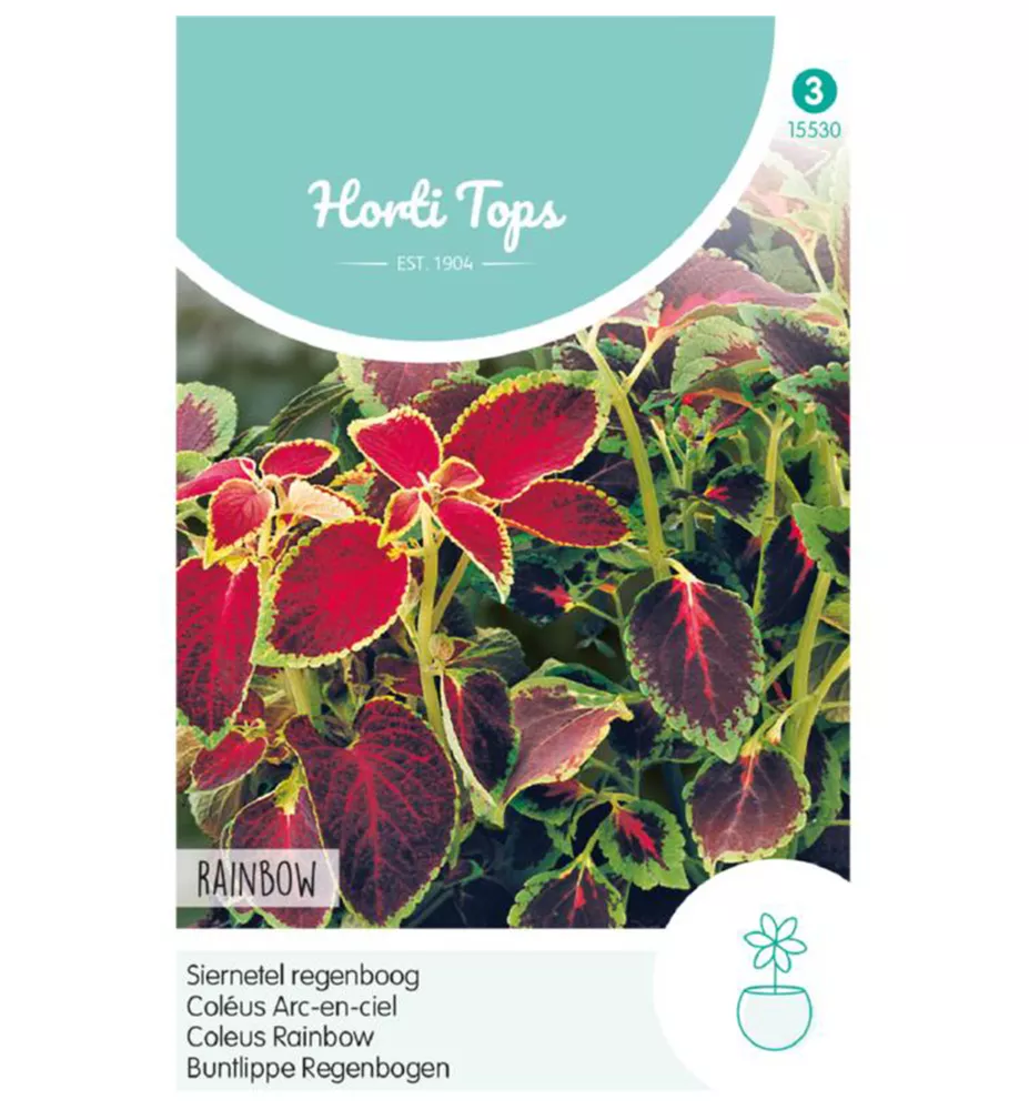 Charakteristika: Koleus ´Rainbow´ poznáme aj pod názvom "Africká pŕhľava". V našich podmienkach sa pestuje ako letnička v balkónových výsadbách alebo ako izbová rastlina. Balenie obsahuje semená farebných kultivarov koleusu s mimoriadne dekoratívnymi listami, ktoré vyzerajú dokonale nielen samostatne ale tiež v ich vzájomných kombináciach.
