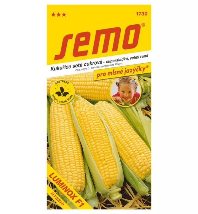 Charakteristika: Kukurica ´Mlsné jazýčky LUMINOX´ je veľmi skorý až skorý super sladký hybrid cukrovej kukurice. Priemerný počet radov na klase je 14-16. Olistený klas je pomerne veľký, má dĺžku 19 až 21 cm. Je vynikajúca na mrazenie, konzervovanie a priamy konzum.