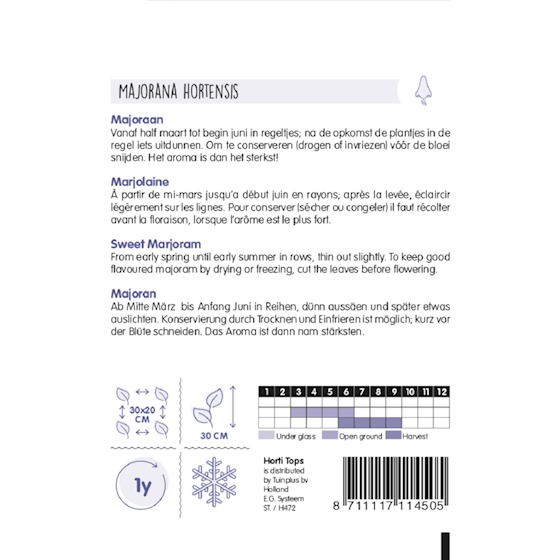 Charakteristika: Majorán záhradný poznáme súčasnosti najmä v sušenej podobe, avšak s čerstvými listami sa jeho účinky, vôňa a chuť znásobuje. Okrem ochucovania pokrmov oceníte túto bylinku aj v ľudovom liečiteľstve. Je vynikajúcim pomocníkom pri liečbe nespavosti, nervových problémov, dokonca odstraňuje aj silné búšenie srdca.