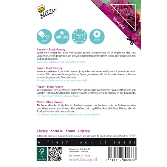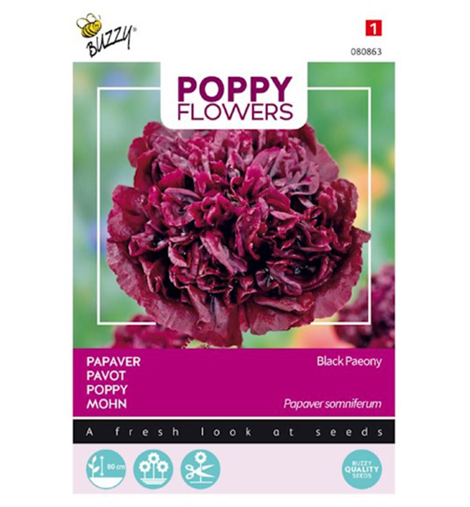 Charakteristika: Vypestujte si prekrásny plnokvetý mak, ktorý v letnom záhone rozhodne nezanikne. Odroda ´Black Paeony´ vytvára červené až čierne kvety, ktoré rastú na neolistenej stonke. Sú vhodné k rezu do čerstvých aj sušených kytíc a kvetinových dekorácií. Kvitne počas celého leta - od júna do augusta. Pestovateľsky nenáročná odroda dorastá do výšky približne 90 cm.