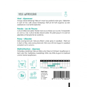 Charakteristika: Prekrásna švajčiarska fialka už na prvý pohľad zaujme veľkými zamatovými kvetmi v sýtej modrej farbe. Stred kvetu zdobí tmavá škvrna a výrazné zlatožlté očko. Vynikne vysadená v letnom záhone, v črepníku na balkóne či terase. S obľubou sa vysádza aj na cintorínoch.
