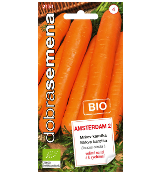 Charakteristika: Mrkva ´Amsterdam´ je skorá odroda s výbornou chuťou. Vytvára úzky, štíhly, valcovitý koreň dlhý až 18 cm. Odroda je vhodná pre priamy konzum, konzerváciu a mrazenie. Semená pochádzajú z BIO produkcie, boli pestované na certifikovaných plochách s dodržaním všetkých požiadaviek kladených na BIO osiva.