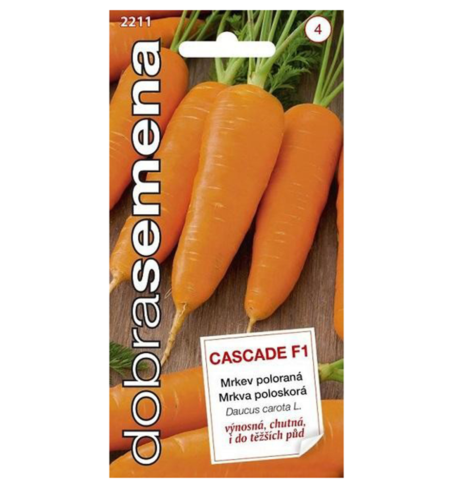 Charakteristika: Mrkva poloskorá ´CASCADE´ je výnosná odroda poloskorej mrkvy. Úrodný hybrid typu "Chantenay" má kratšie kónické korene. Sú vhodné na priamu konzumáciu, na mrkvové džúsy aj na stredne dlhé skladovanie. Dužina mrkvy je sladká a šťavnatá. Je mimoriadne odolná voči vybiehaniu do kvetov, praskaniu.