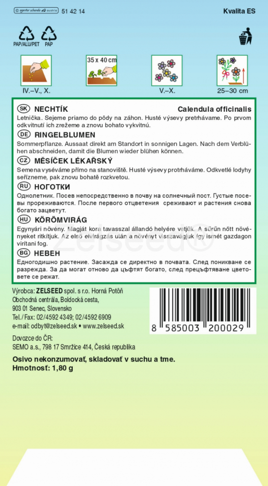 | Botanický názov | Calendula officinalis |