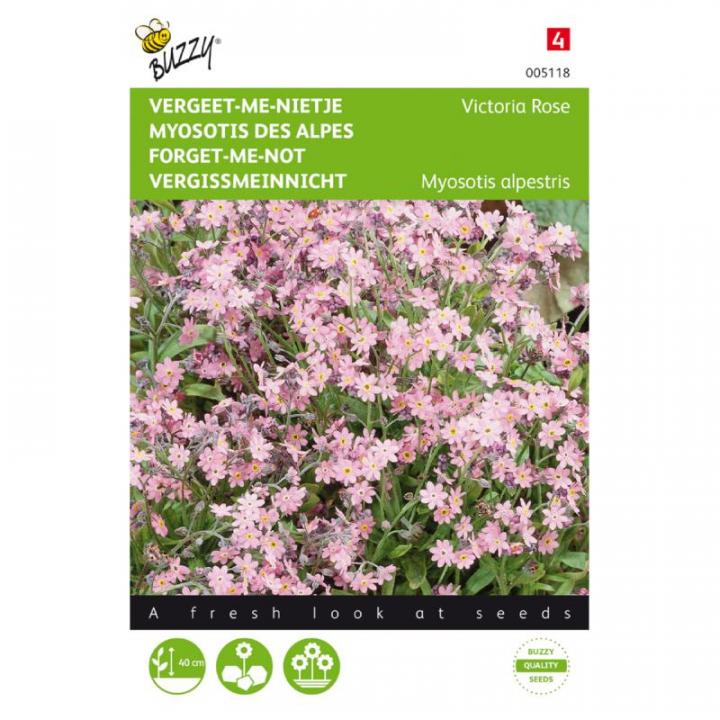 Charakteristika: Nezábudka alpská ´Victoria Rose´ je dvojročná rastlina, ktorá vytvára husté porasty vo výške približne 30-40 cm. Skoro na jar produkuje množstvo jemných svetlo ružových kvetov s nenápadným očkom v strede kvetu. Vysádzame ju pod koruny stromov a krov, vynikne v kombinácii s kameňom.