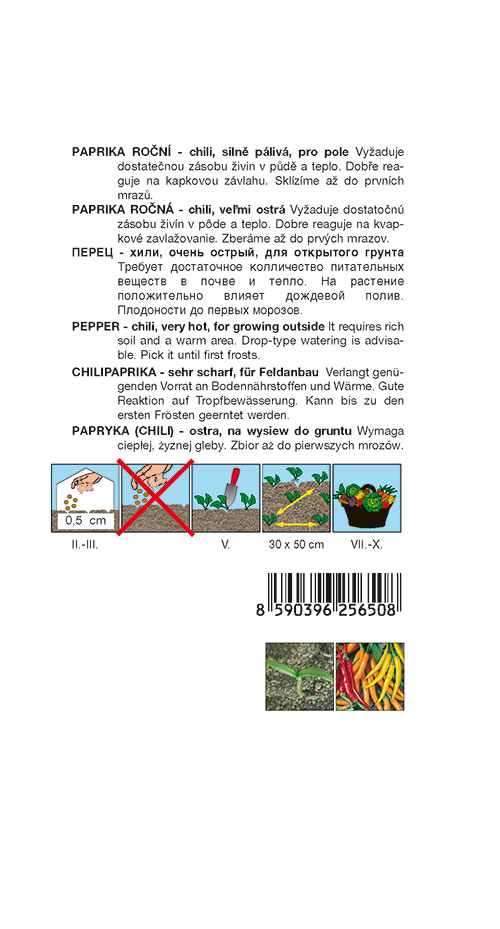 Zmes skorých chili papričiek určených na pestovanie na poli, vo fóliovníkoch aj skleníkoch.
