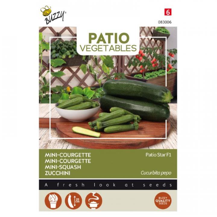 Charakteristika: Cuketa ´PATIO STAR´ je vďaka kompaktnému vzrastu vyhľadávanou odrodou, ktorá je vhodná na pestovanie v malých záhradách a v črepníkoch na terasách. Rastlina produkuje dlhšie, štíhle plody zelenej farby s mierne sieťovanou štruktúrou. Plody zberáme v mladom štádiu v dĺžke 15 - 25 cm.