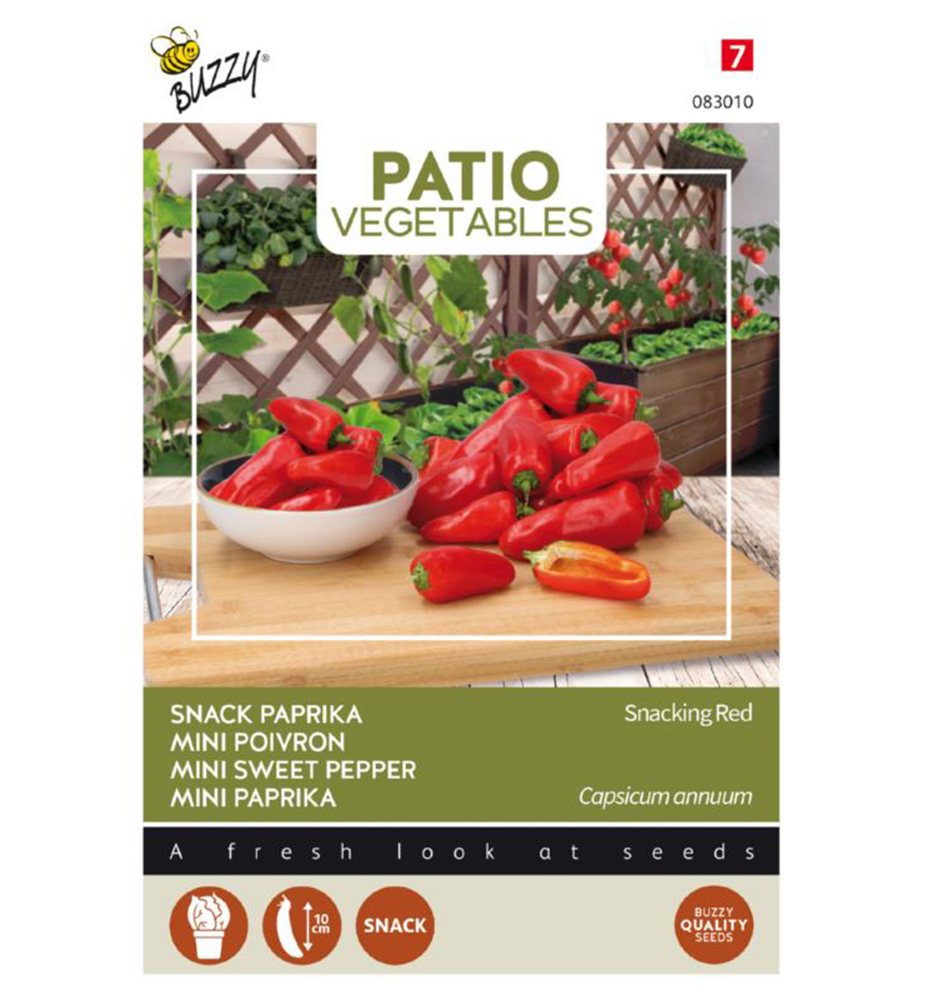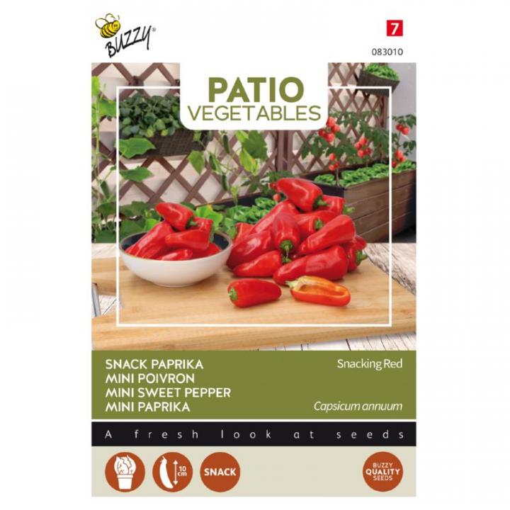 Charakteristika: ´SNACKING RED´ je mini paprika s červenými plodmi vhodná na pestovanie v menších záhradách, fóliovníkoch alebo v kvetináčoch na balkóne. Plody, ktoré sú takmer bez semien, sa konzumujú celé. Extra sladké plody sú vhodné na priamy konzum aj na sterilizovanie. Pri dostatočnom zásobovaní živinami poskytujú rastliny stredného vzrastu veľký počet plodov.