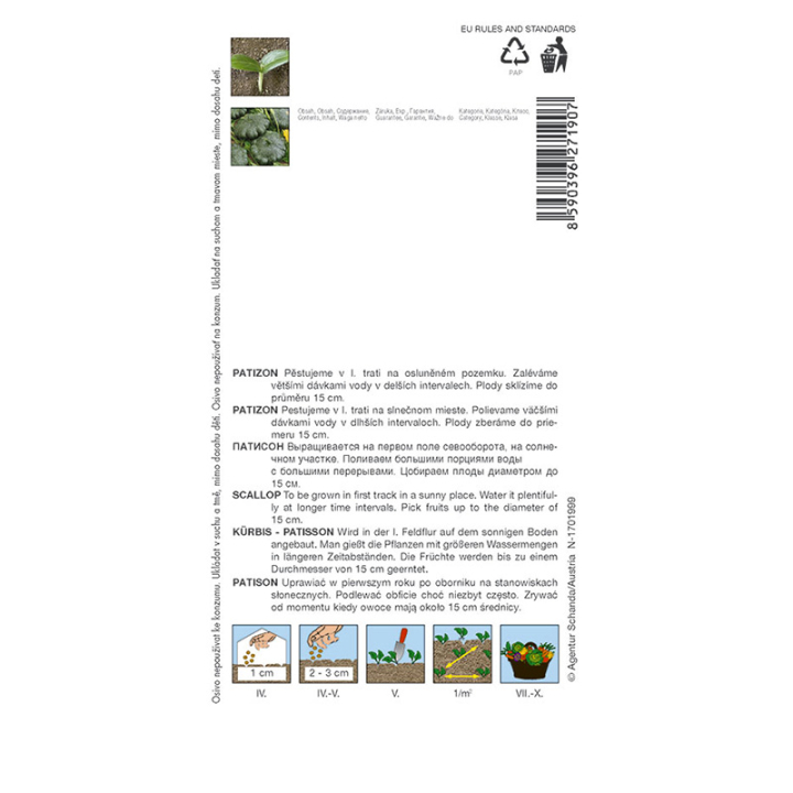 Charakteristika: Patizón ´GREENDISC´ je výnosná, vysoko adaptabilná a nenáročná odroda s tmavozelenou farbou plodov. Plody sa dajú zberať v mladom štádiu na nakladanie alebo spracovanie podobne ako cukety. Plne vyzreté plody s tvrdou šupkou môžete dlhodobo skladovať a spracovávať v priebehu celej zimy.V letných mesiacoch sa odporúča prijímať plody patizónu, pretože v tomto období obsahujú najviac vitamínu C.