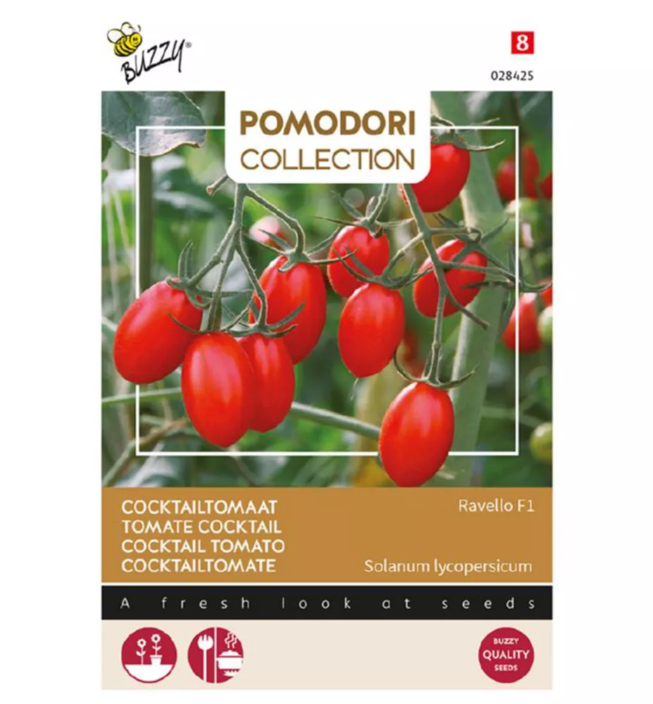 Charakteristika: Rajčiak kolíkový koktailový ´RAVELLO F1´ je veľmi odolná, bohato plodiaca odroda. Svieže červené plody majú oválny tvar a sviežu, aromatickú chuť. Ich hmotnosť je okolo 25 g. Využívajú sa k priamej konzumácii, do šalátov a na dekoráciu jedál. Odroda je veľmi rezistentná voči chorobám.