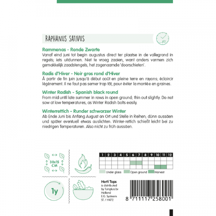 Zimná odroda čiernej guľatej reďkovky vhodnej na skladovanie.