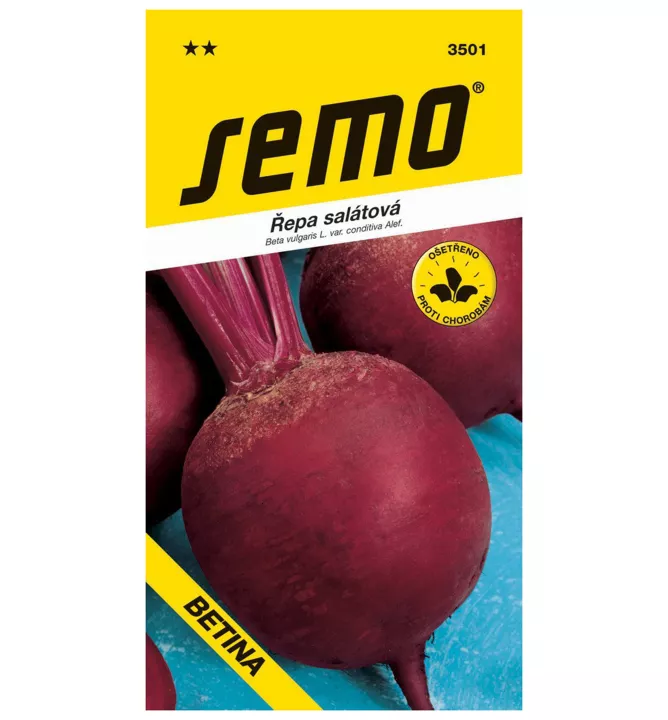 Charakteristika: Repa šalátová ´BETINA´ kvalitná klasická odroda. Guľovitá, intenzívne sfarbená odroda so zvlášť jemnou dužinou. Je stredného vzrastu. Buľva je plochoguľovitá až guľovitá, s červeným až hnedočerveným povrchom, v podzemnej časti mierne korkovitá. Dužina je intenzívne červená, jemná, príjemnej chuti, bez svetlejších pruhov. Má dobrú odolnosť proti listovým chorobám. Z hustého výsevu koncom júna až začiatkom júla môžeme vypestovať malé buľvičky vhodné na konzerváciu v celku. Vegetačná doba je 120 dní, zo 100 m2 môžeme pozberať 380 - 450 kg buľvičiek.