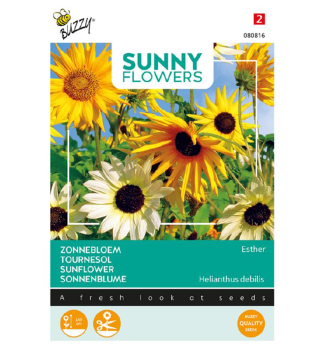 Charakteristika: Esther je veľmi pekný mix drobnokvetých slnečníc v krémových a žltých tónoch. Kvety majú veľkosť cca 10 cm. Odroda rastie do výšky približne 140 cm. Môžete ich zasiať aj ako každoročný živý plot pozdĺž zeleninovej záhrady. Vyzerajú dobre aj v kvetináčoch, alebo balkóne. Slnečnica kvitne od júla až do októbra.