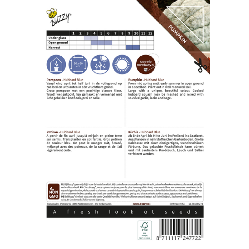 Charakteristika: Tekvica ´HUBBARD BLUE´ je odroda pochádzajúca z Ameriky. Plody majú zvrásnený a ryhovaný povrch a sivomodrú farbu. Dužina je oranžová, príjemne sladká vhodná na pečenie a ďalšie tepelné spracovanie. Hmotnosť zrelých plodov sa pohybuje okolo 5–8 kg. Je výborne skladovateľná.
