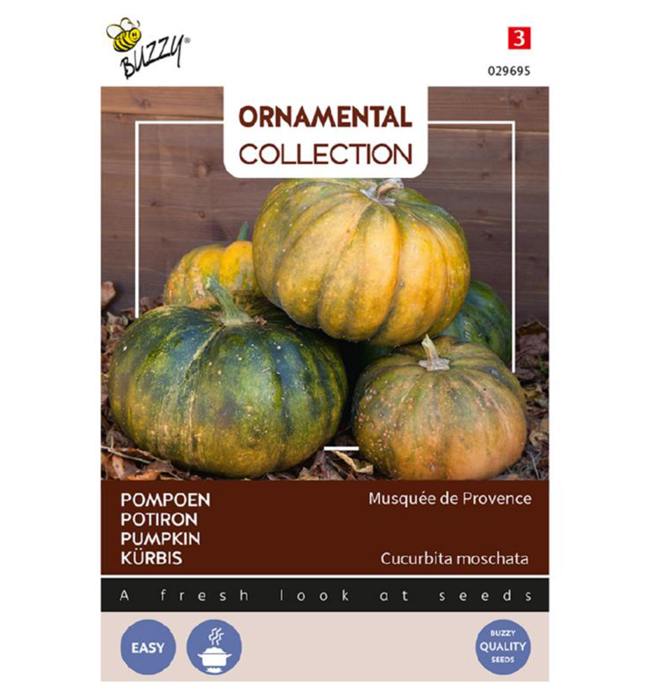 Charakteristika: Tekvica ´MUSQUE DE PROVENCE´ je francúzska odroda muškátovej tekvice s veľmi výrazným pruhovaním. Plody sú tmavozelené až sýtooranžové tekvice s hmotnosťou až 10 kg. Dužina je sýtooranžová so sladkastou chuťou a v čerstvom stave pripomína chuťovo melón. Okrem konzumácie v surovom stave sa dá využiť do polievok, koláčov, na zaváranie.