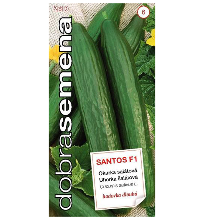 Charakteristika: Uhorka šalátová ´SANTOS´ je úrodný hybrid na jarné aj jesenné pestovanie. Plody sú hladké, s krátkym kŕčkom a veľkosťou 30 - 35 cm. Odroda má výbornú chuť je geneticky nehorká. Rastlina je rezistentná ku kladosporiu a tolerantná k vírusovej mozaike uhorky .