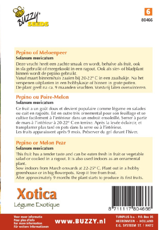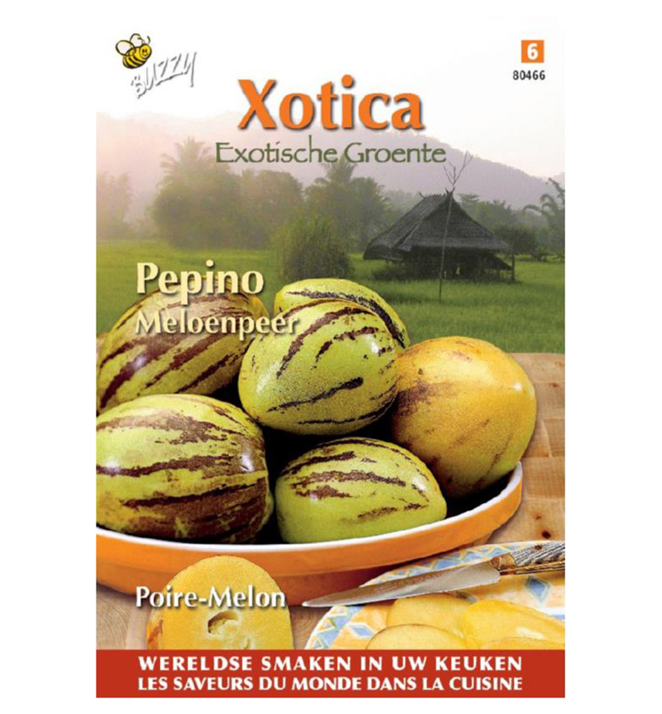 Charakteristika: Melón ´Pepino´ je vynikajúca odroda s jemnou chuťou, ktorá pripomína chuť zrelých hrušiek. Plody sú oválneho tvaru a krásnej žltej farby s farebnými fliačkami na povrchu. Je jedlý celý vrátane jeho šupky aj semienok. Môže sa konzumovať v čerstvom stave, alebo ako prísada v zeleninových šalátoch. Začína plodiť približne 9 mesiacov po vysiatí.