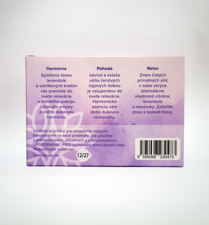 Charakteristika: Potešte svojich blízkych netradičným darčekom. Relaxačný set obsahuje: vonný olej Relax, vonný olej Pohoda, vonný olej Harmónia.