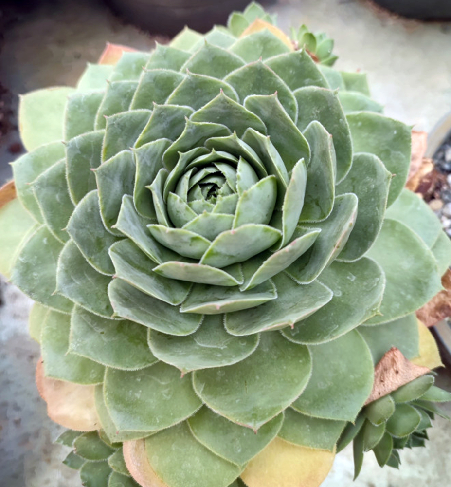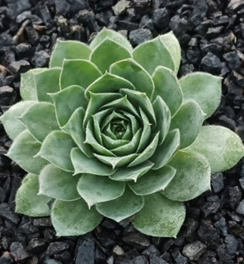 Skalnica s pravidelnými dužinatými listami s modrozelenej farby a strieborným nádychom.