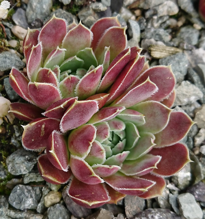 Nenáročná skalnica s tmavšími bordovo zelenými dužinatými listami.
