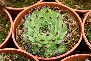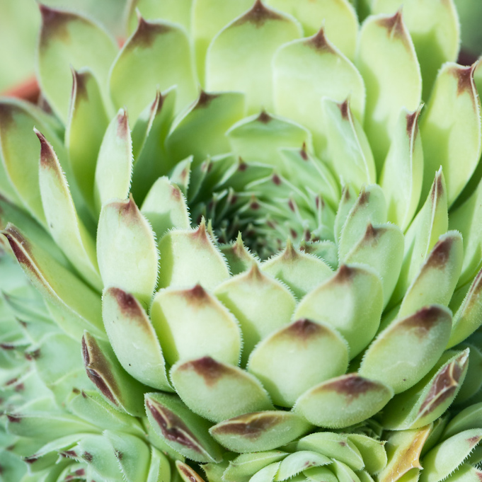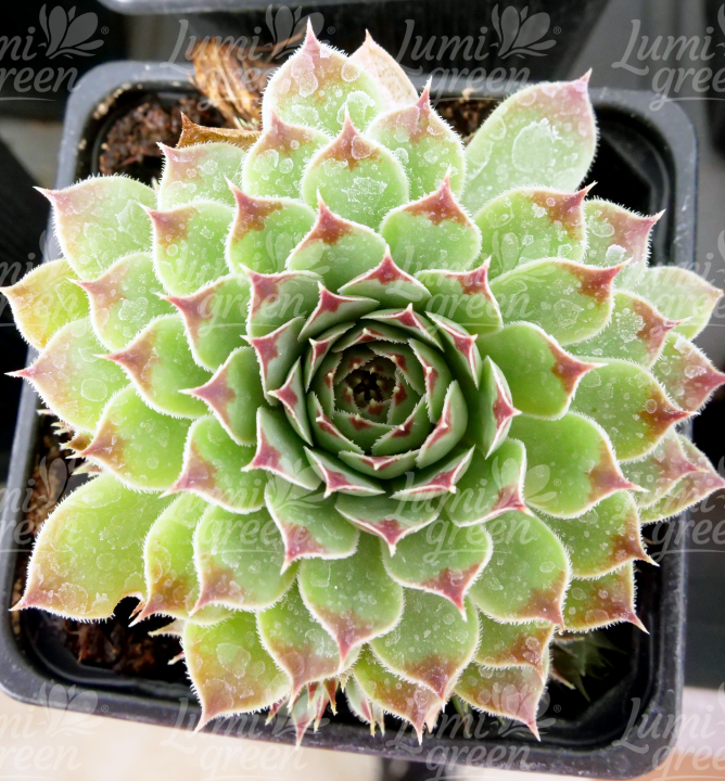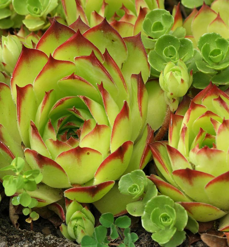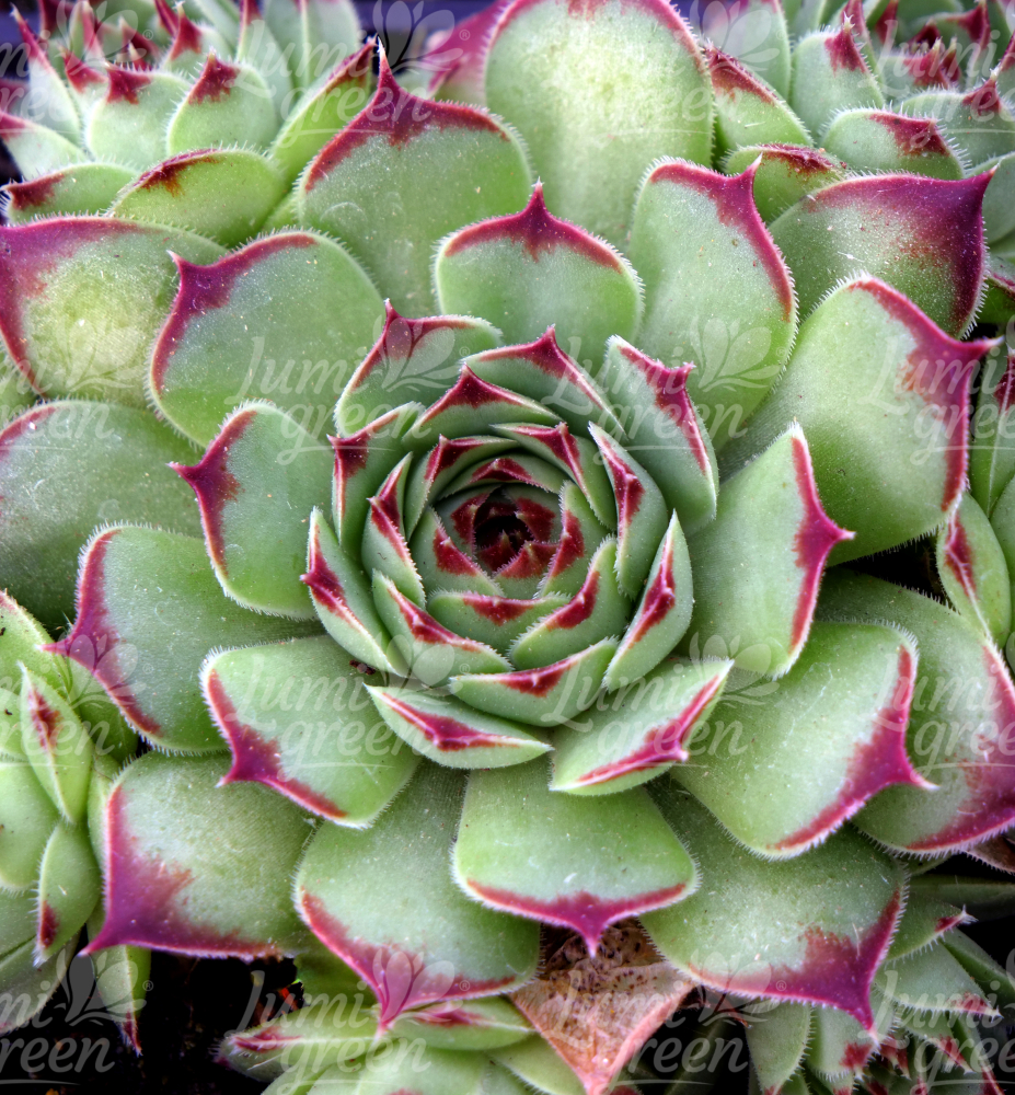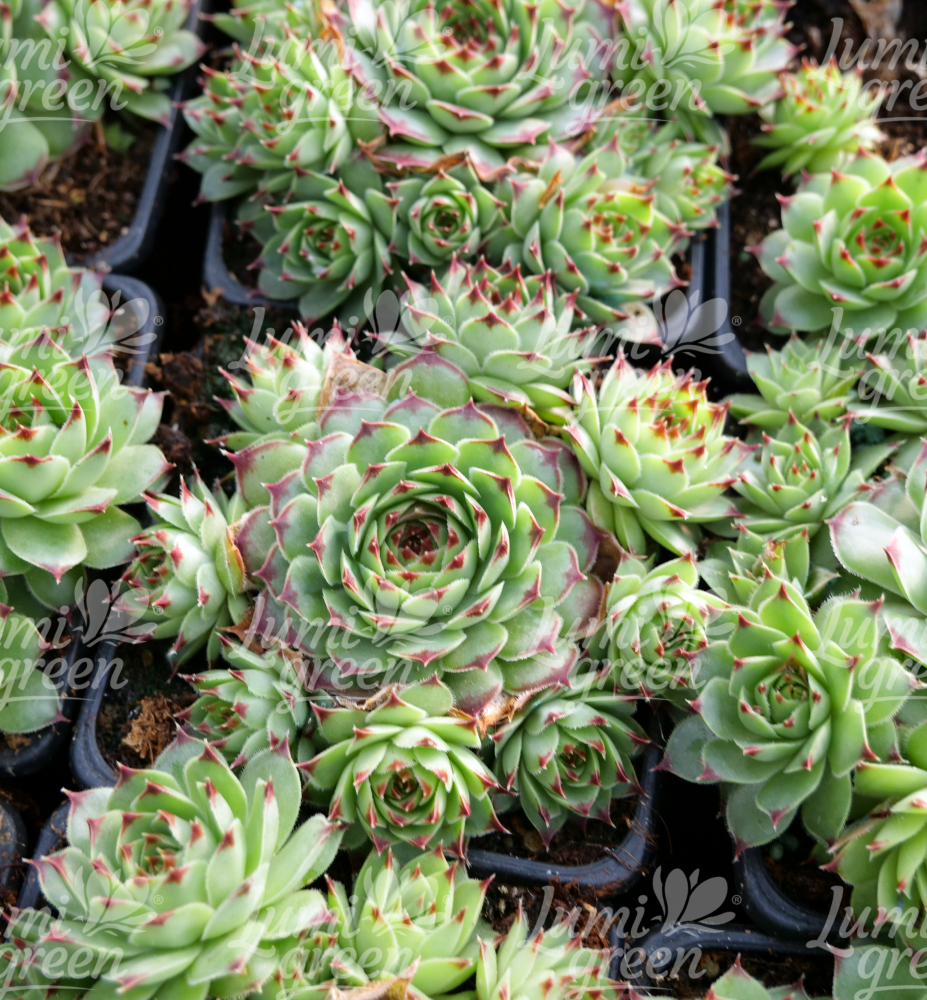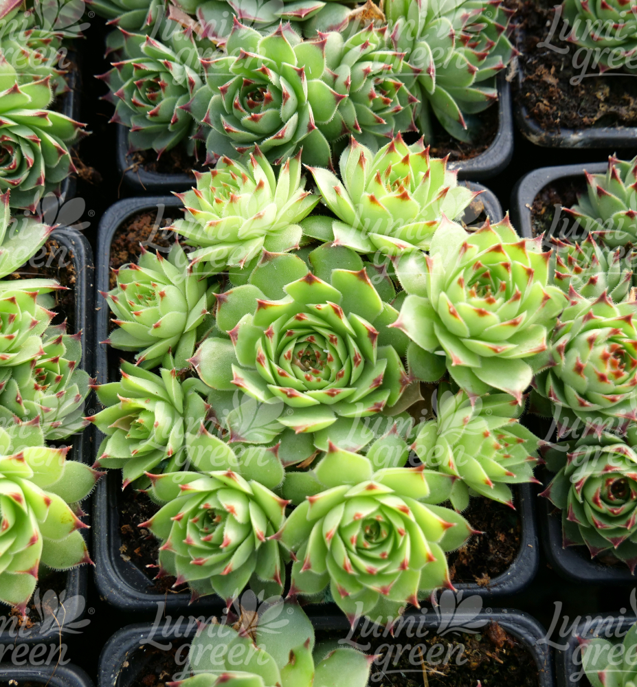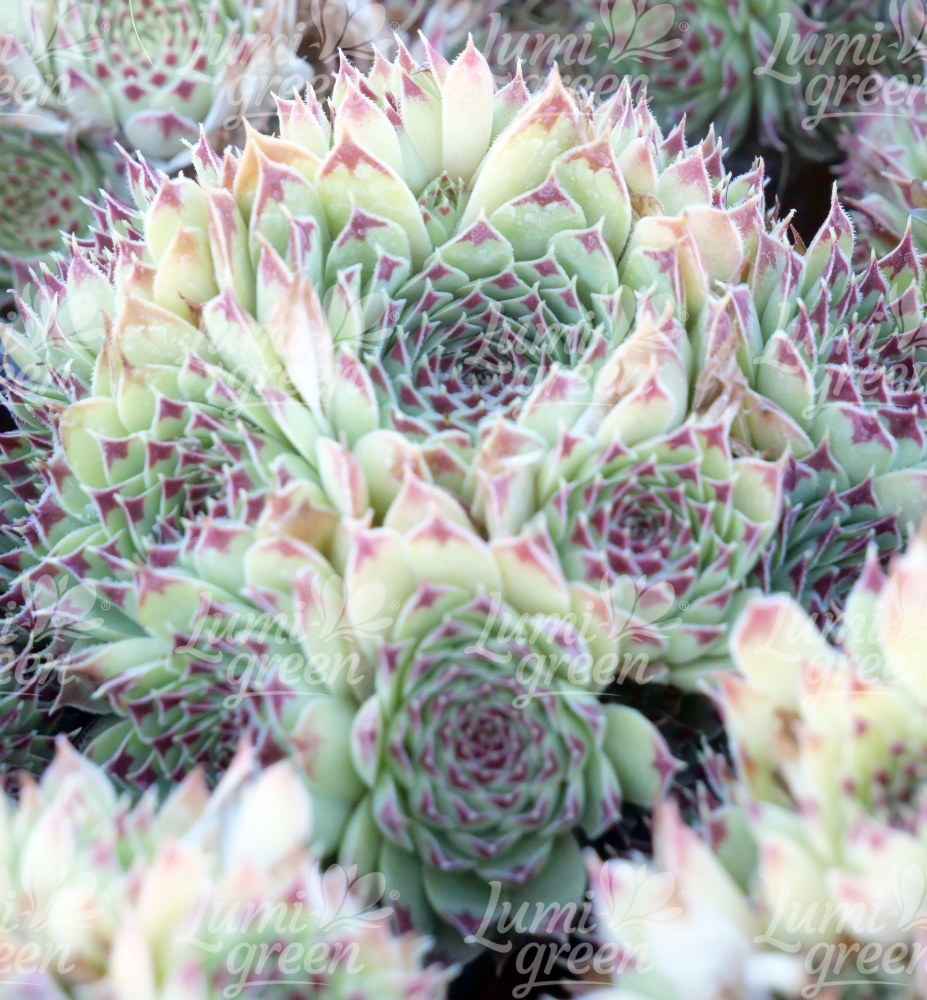 Pútavá dvojfarebná zelená skalnica s tmavými špičkami.