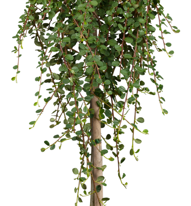 Žiadaný vždyzelený skalník na kmienku s straktívne prevísajúcimi výhonmi.