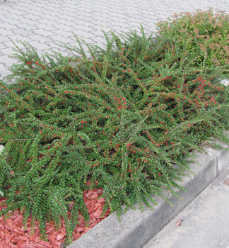 Vždyzelený kompaktný ker s dvojfarebnými listami a bielymi kvetmi.