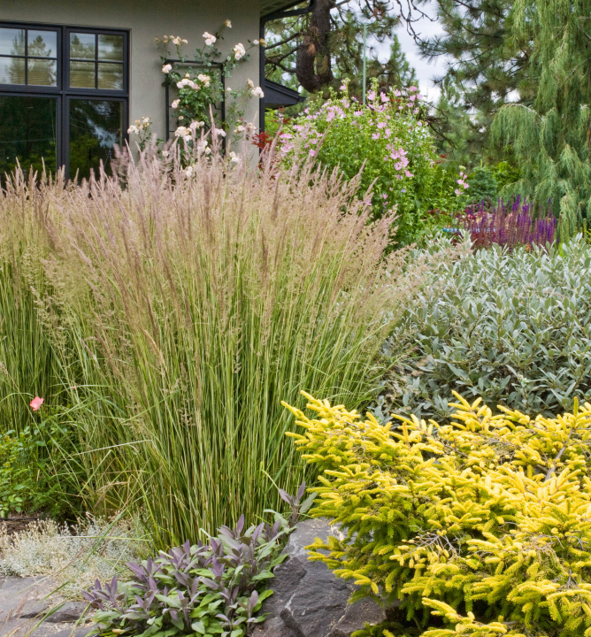 Kompaktná, nenáročná okrasná tráva so vzdušnými ružovými až striebornými metlinami.