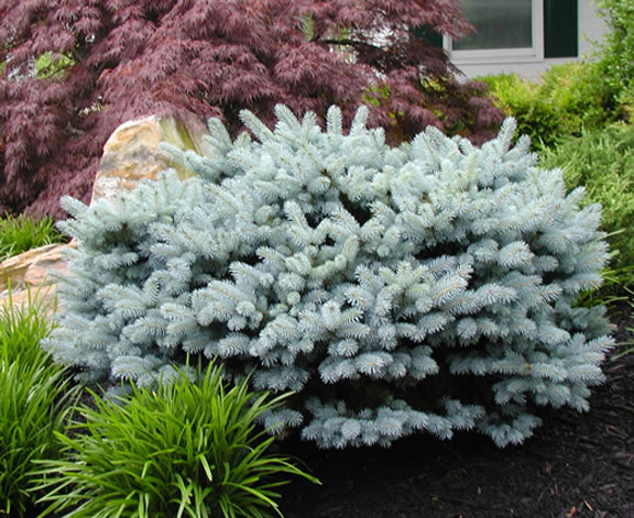 Široko kužeľovitý vysoký smrek s kontrastným dvojfarebným ihličím.