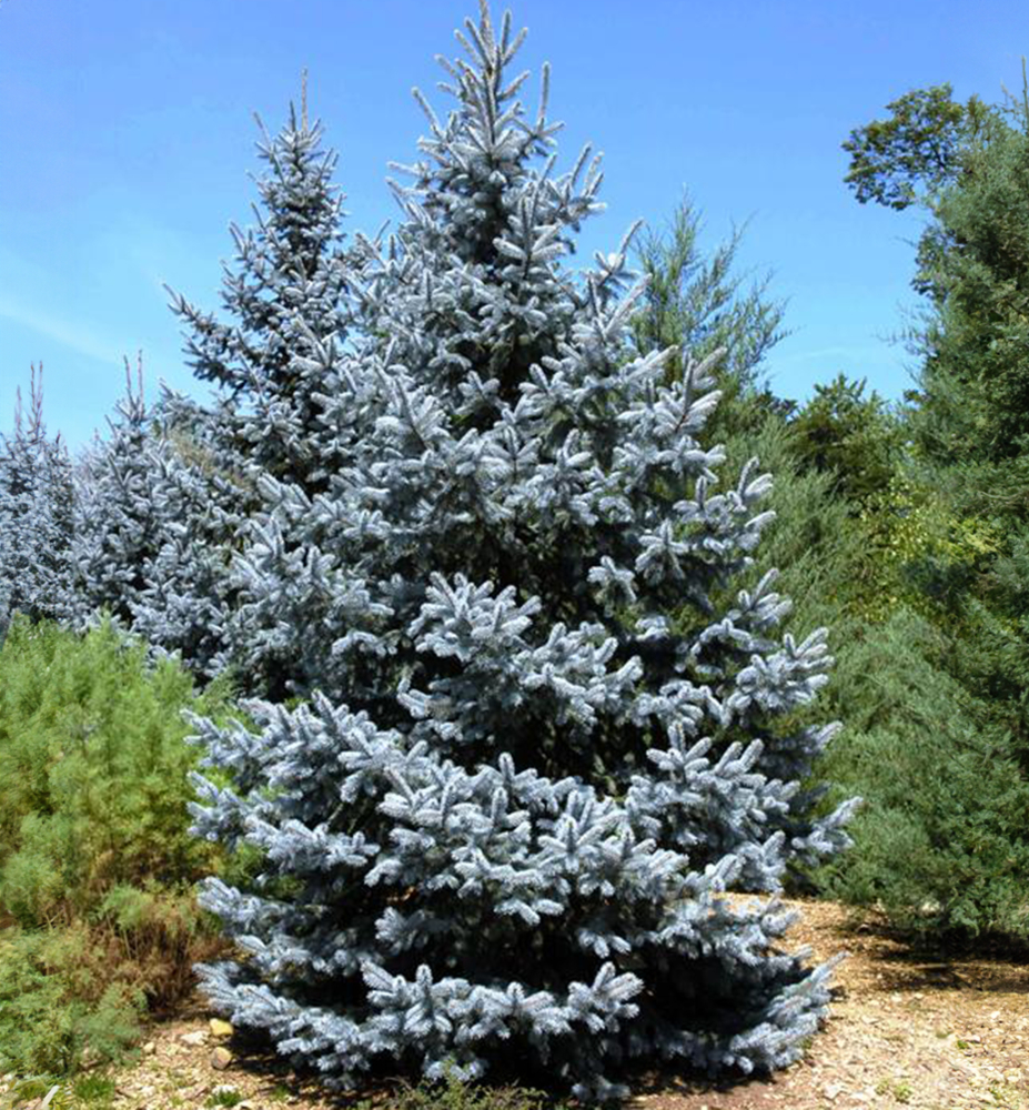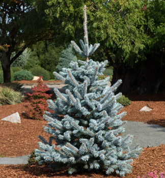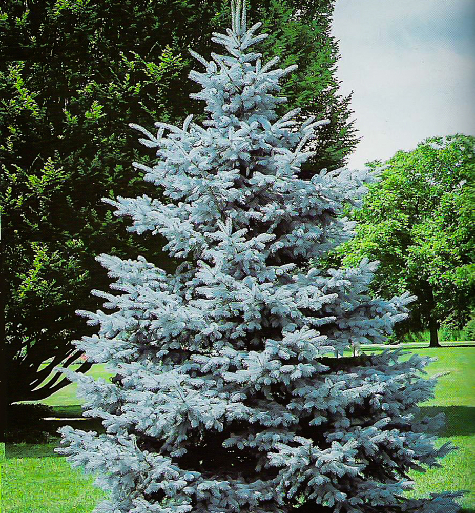 Široko kužeľovitý vysoký smrek s kontrastným dvojfarebným ihličím.