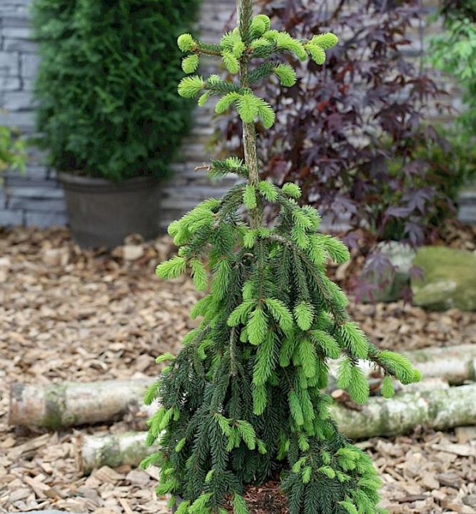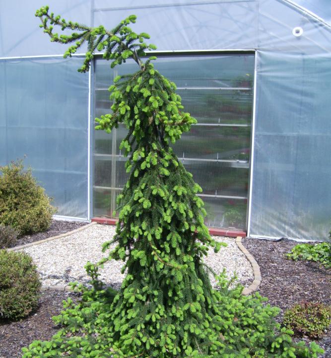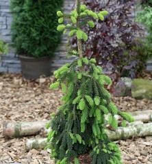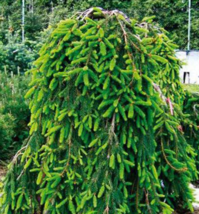 Charakteristika: Smrek previsnutý ´INVERSA´, nazývaný aj plačúci smrek, je obľúbená previsnutá forma smreku. Výhony sú sýtozelené, 10-20 mm dlhé. Môžeme ho vypestovať do výšky, akú potrebujeme, tak, že mu neustále vyväzujeme stredový výhon. Z neho sa potom vytvára vodopád nových padavých výhonov. Pokiaľ nie je vyviazaný, jeho výhony sa plazia po zemi a efektívne zabraňujú rastu buriny. Je výborný do skalky, na okraj jazierka, kde vytvorí pôsobivú scenériu.
