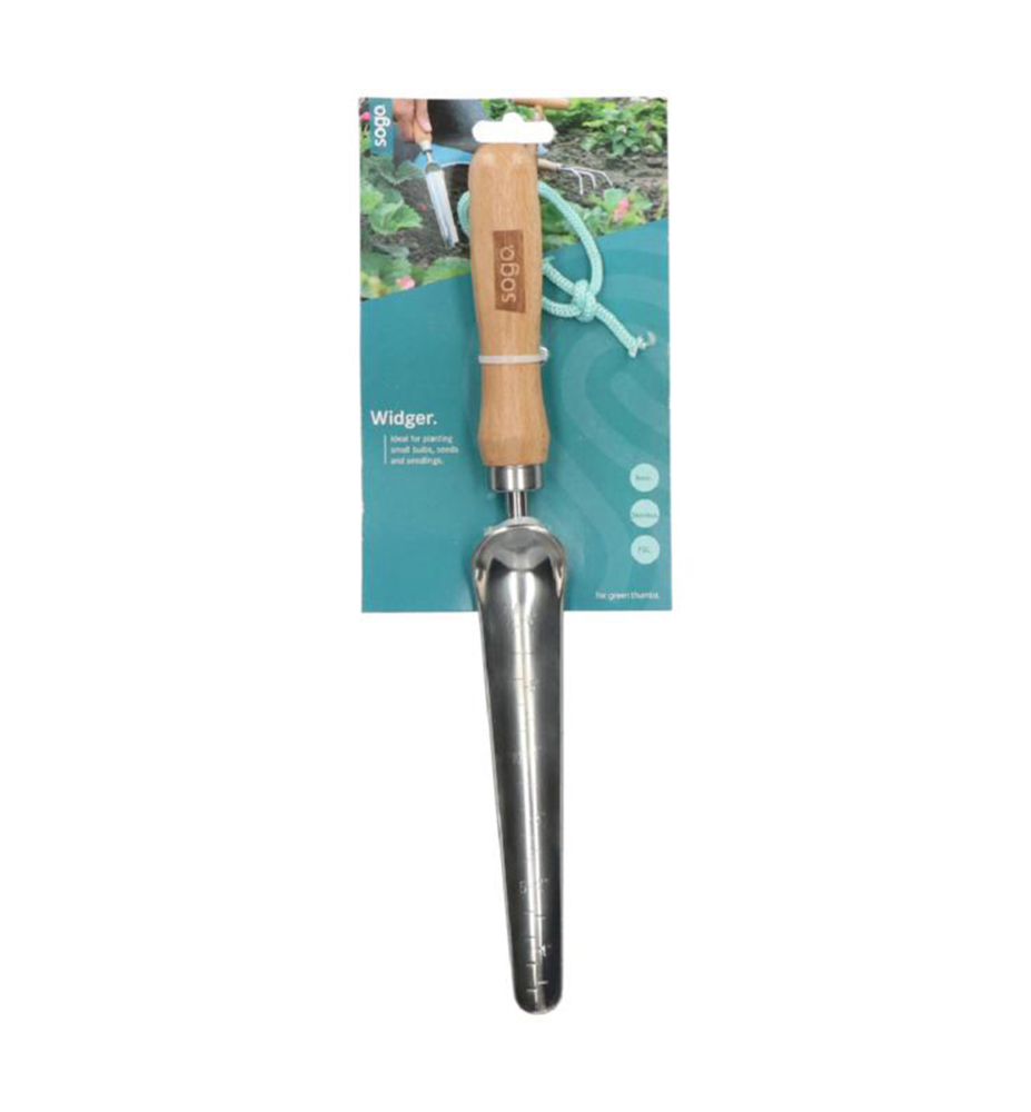 Charakteristika: Sádzací kolík SOGO je ideálny pre ľahké vysádzanie sadeníc, presádzanie rastlín pre izbové aj vonkajšie použitie. Má ľahko uchopiteľnú drevenú rukoväť s popruhom určeným na zavesenie. Pracovná časť je vyrobená z vysokokvalitnej nehrdzavejúcej ocele.